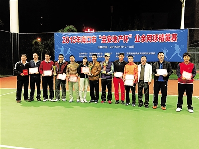 本次比赛吸引了省内近百名业余网球爱好者参加,设男子单、双打和混合双打三个项目。获得男子双打冠军的许才士和蔡于贝毕业于海南省高级体育技术学校,是该校网球队队员。中专毕业后,许才士走上了工作岗位,蔡于贝进入大学继续深造。在本次比赛中他俩一路过关斩将,分别战胜了三对选手进入决赛。他俩决赛的对手孙延楼和申永记组合实力强劲,孙申组合这几年多次在海南省内的男子双打比赛中折桂。在决赛中许蔡组合敢打敢拼,战胜了对手夺冠。