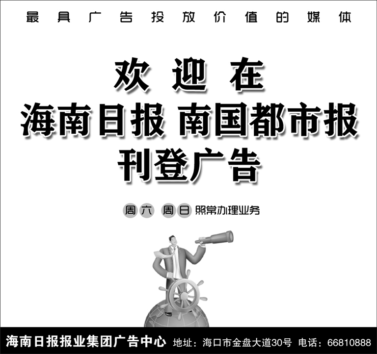 欢迎在海南日报 南国都市报刊登广告