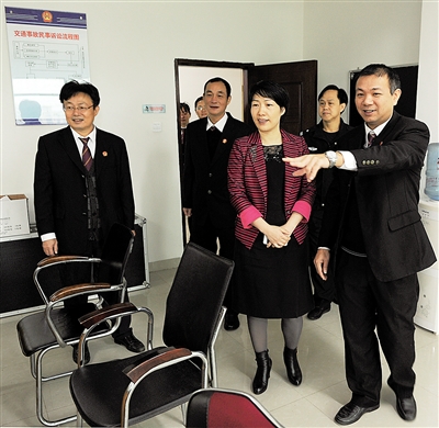 2013年年底,交通法庭试行“三位一体”联动调解的“诉调对接”工作机制,即行政调解、人民调解、司法调解三调联动,提高化解矛盾纠纷的成功率。