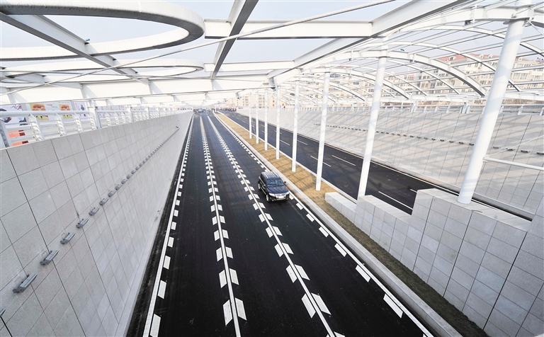 1月23日,一辆车从隧道北口驶入。当日,国内首座高震区水下沉管隧道——天津市滨海新区中央大道海河隧道试通车运行,海河南北两岸的车程由原来20多分钟缩短至3分钟。 隧道全长4.2公里,双向六车道,每节沉管宽36.6米,高9.65米,长85米。隧道抗震级别高达8级。