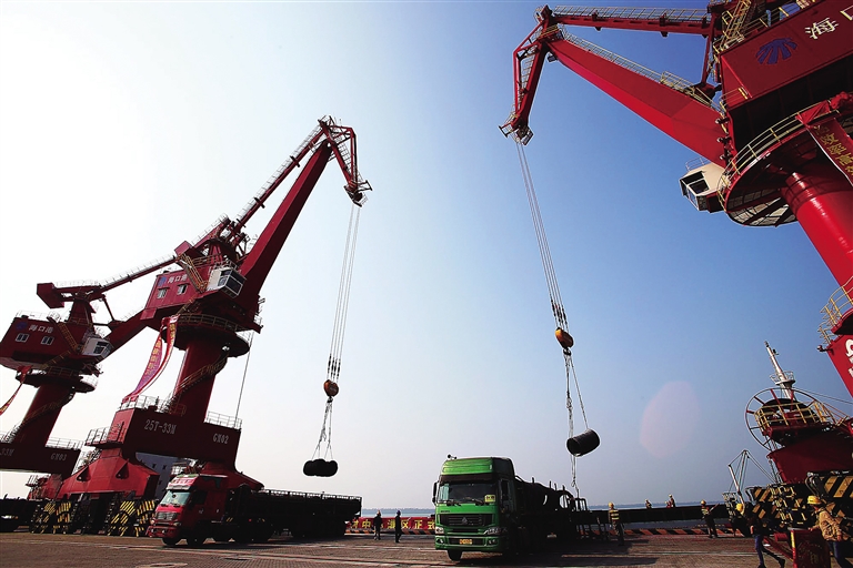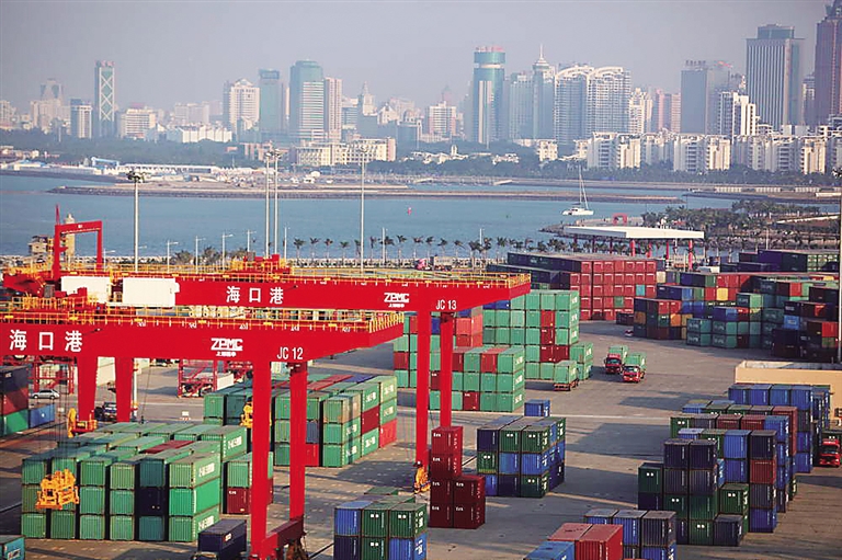 如今的海口港已发生了翻天覆地的变化。在航线布局方面,建成了较为完善的贯穿南北、连接东西的集装箱运输网络,其中内贸航线已开通28条支干线,覆盖了华南、华东、华北、东北等地区的沿海主要港口及长江水系的主要港口;两条外贸航线通过香港和胡志明市辐射东亚、东南亚、西亚及欧美,有力推动了海口港集装箱业务迅猛发展。