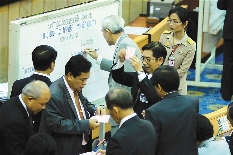 1月23日,在泰国曼谷,泰国国家立法议会举行投票,决定是否就大米渎职案弹劾前总理英拉。 泰国前总理英拉当日遭到国家立法议会弹劾。按照泰国法律,英拉在接下来5年内不得从政,也就无法参加下届大选。 新华社发