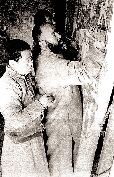 1941年年底,张大千只身一人经甘肃武威等地到达青海,与塔尔寺的藏族画工会合后,备足画布、颜料和生活物资,于1942年春夏之际再次来到敦煌,正式展开壁画临摹工作。