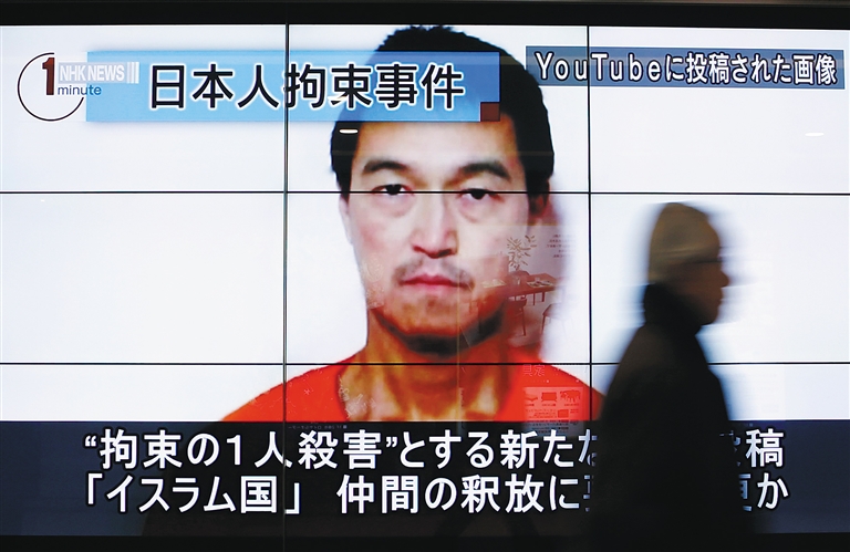 25日上午,日本首相安倍召开记者会,宣布极端组织已经处死人质的可信度“高”。他说,政府将继续鉴别视频中的图片和配音,以完全确认其真实性。