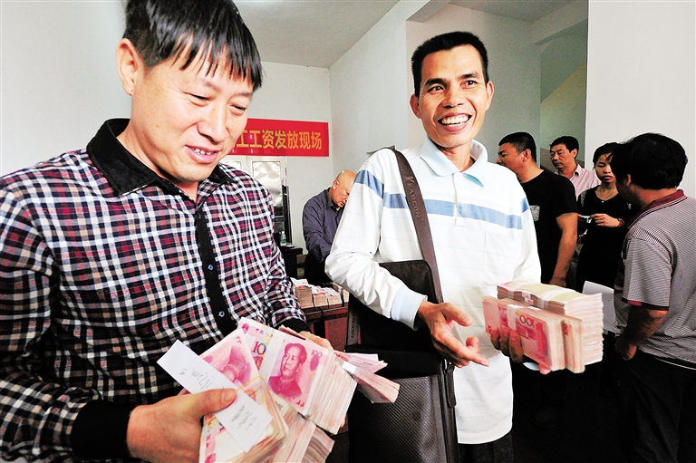 现场四分部负责人告诉记者,考虑到快要过年了,公司决定提前向农民工支付过年工资,让辛苦了一年的农民工们高高兴兴地过个年。