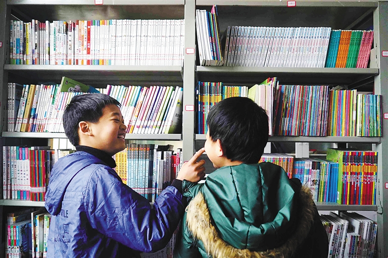 1月27日,在金溪县陆坊乡石溪村小学,两名男孩在图书室里挑选课外书。石溪村小学曾是金溪县教学条件最差的学校之一,自从与城区的仰山小学“结对子”创建教育发展共同体以来,学校建起了图书室,校园环境也得到改善。 为促进区域教育均衡发展,江西省金溪县近年来探索出创建教育发展共同体、校长教师交流轮岗制等新模式。一方面,将城区学校与农村薄弱学校结成“一对一”教育发展共同体。另一方面,建立教师交流激励机制,鼓励农村教师进城跟班学习,并规定城区获县级以上荣誉的优秀教师、骨干教师参与为期至少一年的“送教下乡”,这一系列新型发展模式使农村娃不必“挤破头”也能在家门口享受到更好的教学资源。 新华社发