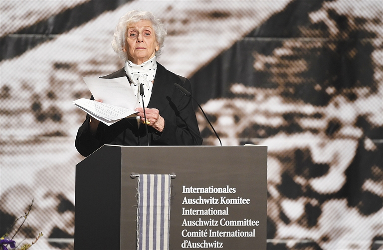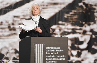1月26日,在德国柏林,奥斯威辛幸存者伊娃·普斯陶伊-福希迪参加国际奥斯威辛委员会举行的奥斯威辛集中营解放70周年纪念活动时发言。 1月27日是奥斯威辛集中营解放70周年纪念日。奥斯威辛集中营是纳粹德国在第二次世界大战期间在波兰境内设立的最大集中营,包括大批犹太人在内的约110万人在该集中营被杀害。1945年1月27日,苏联红军解放了奥斯威辛集中营。 新华社/法新