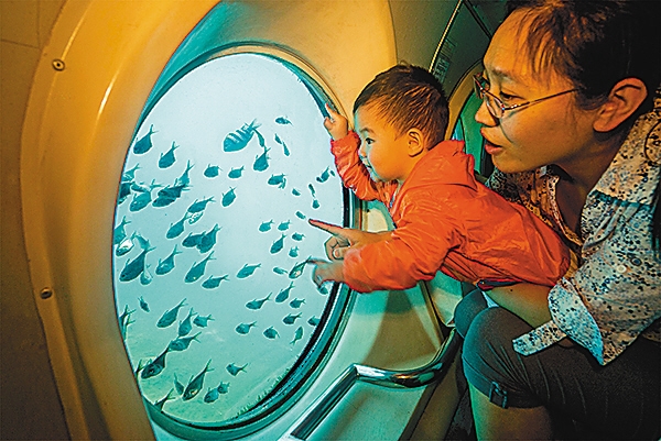 分界洲岛还有中国唯一一艘海底观光潜艇,目前全球也只有8艘这样的海底观光潜艇。对于想要看一看海底世界却又无法潜水的孩子来说,乘坐这艘不需要任何设备的潜艇则是最理想的方式。通过潜艇两侧明亮巨大的观景窗口,孩子们可以近距离观赏该海域的各类珊瑚、热带鱼、海胆、海星、贝壳和沉船、飞机残骸等,感受海洋的无穷魅力。
