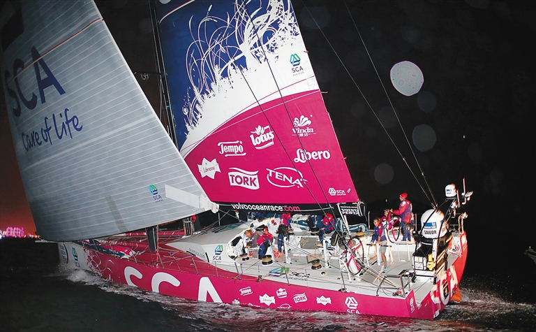 1月27日晚,参加沃尔沃环球帆船赛的全女子船队爱生雅队到达三亚。至此,参加沃帆赛的6支船队全部抵达第三站终点三亚。