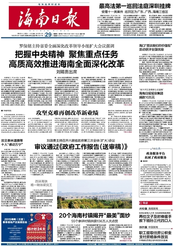 海南日报 头版 001 2015-01-291 2015年01月29日 星期四
