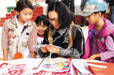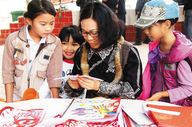 图①为剪纸艺术家为群众创作剪纸作品。 本报记者 武威 通讯员 陈思国 摄