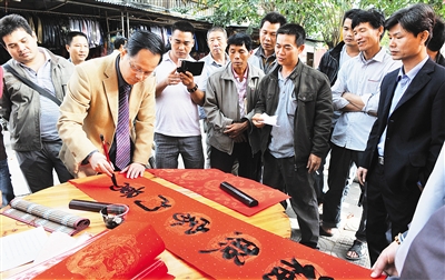 图②为书法家现场写春联送群众。 本报记者 武威 特约记者 黄青文 摄