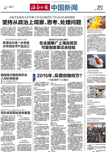 海南日报 中国新闻 013 2015-01-301 2015年01月30日 星期五