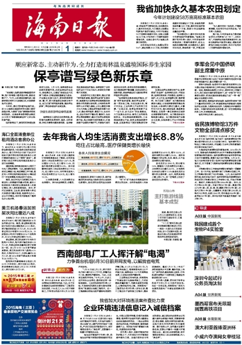 海南日报 头版 001 2015-02-011 2015年02月01日 星期日