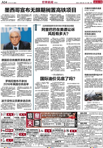 海南日报 世界新闻综合 004 2015-02-011 2015年02月01日 星期日