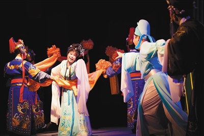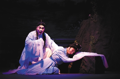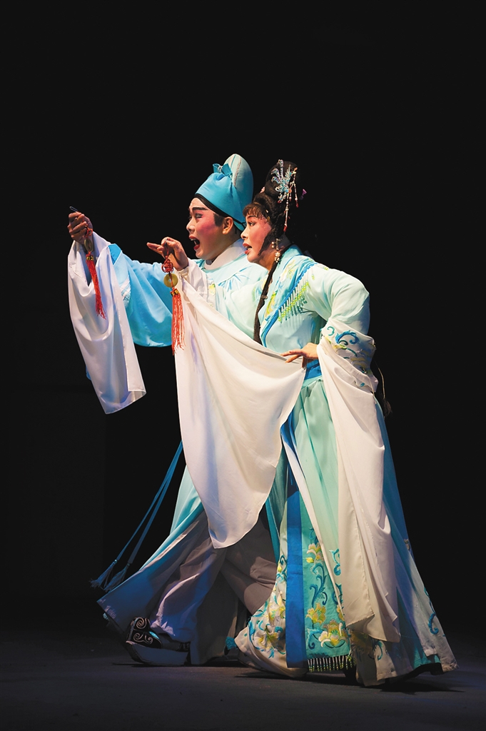 一头精致的发束,一袭精美的裙装,拉长了音调的唱腔,一位身着古装的女子,正与一位男子深情相望……