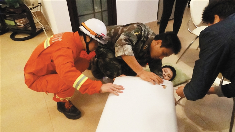 2月1日17时30分,海口消防支队119指挥中心接到群众报警,海口市海府路康盛商务公寓5楼有一名10岁儿童脚部被卡在洗衣机内。接到报警电话后,消防支队立即调派国兴中队1辆抢险救援消防车赶到现场。消防员用工具将洗衣机外框拆掉,小孩获救。消防员11分钟快速高效的救援,获得了孩童家长的称赞。