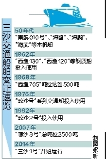 “三沙1号”克服各种困难,成功运行近一个月,揭开了三沙交通史新的篇章。在这样的时刻,我们也不能忘怀在各个历史时期为维权、保护和开发三沙作出了巨大贡献的各色交通船舶,正是它们以及船员们筚路蓝缕地开拓,为今天的艨艟巨舰驶进三沙岛礁奠定了坚实的基础。