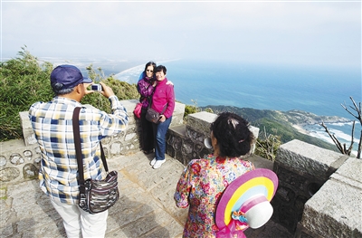 2月1日,文昌市“航天小镇”龙楼镇铜鼓岭旅游风景区,络绎不绝的游客来此登高望远,饱览美景。随着文昌卫星发射基地的建设和旅游基础设施的完善,不少人选择到未来的“航天城”旅游、购房。本报记者 王凯 通讯员 王昊 摄