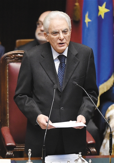 2月3日,在意大利罗马,意大利新总统马塔雷拉在宣誓就职后发表演讲。 在1月31日的意大利总统选举第四轮投票中,民主党推举的候选人,现年73岁的意大利前副总理马塔雷拉当选新一届总统。