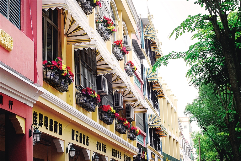 整齐的连排屋顶、精致的雕花立柱、雨棚下的小花盆栽……行走在琼海市中原镇的镇墟主干道上,街道两旁那些充满南洋格调的红、黄、蓝、绿等骑楼建筑让这条小街充满了跳跃的色彩,吸引着人们的目光。这些色彩也让你的春节相册变得更加色彩斑斓,别有风味。