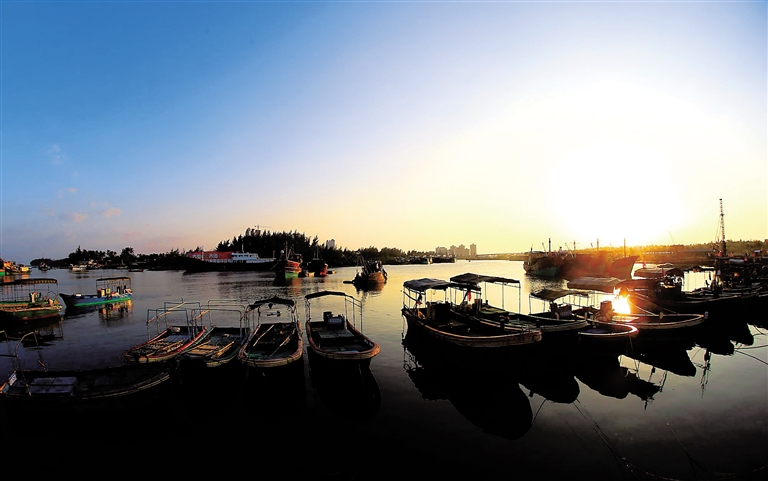 由于疍家文化,陵水的新村港是十分特别的一个地方。在新村港,建在水面上的渔排是这里的疍家人赖以生存的“田地”。在渔排上,那些简易的房子是照看渔排的家庭临时的居所。新村港的男人们大多被南方的日头晒得黝黑,皮肤粗糙得如海风。偶尔开船驶过的少年双脚岔开坐在船尾,头发被海风往后梳。行走于新村的疍家渔排,你会发现这里的女主人们都把这临时的家收拾得干干净净。在渔排上玩耍的孩子和狗永远是这纯净画面里最令人愉悦的焦点。待到入夜,站在海边望向新村港, 20平方公里的内港及近海灯火辉煌,构成一副“海上蜃楼”的海街景象。