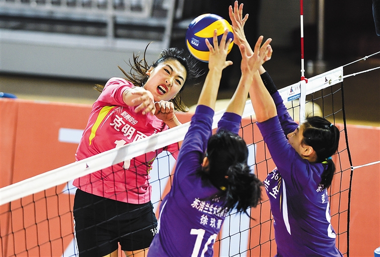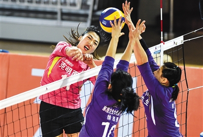 2月3日,在全国女排联赛总决赛第4场比赛中,八一女排以3:0战胜上海女排,从而以3:1总比分夺得冠军。新华社发