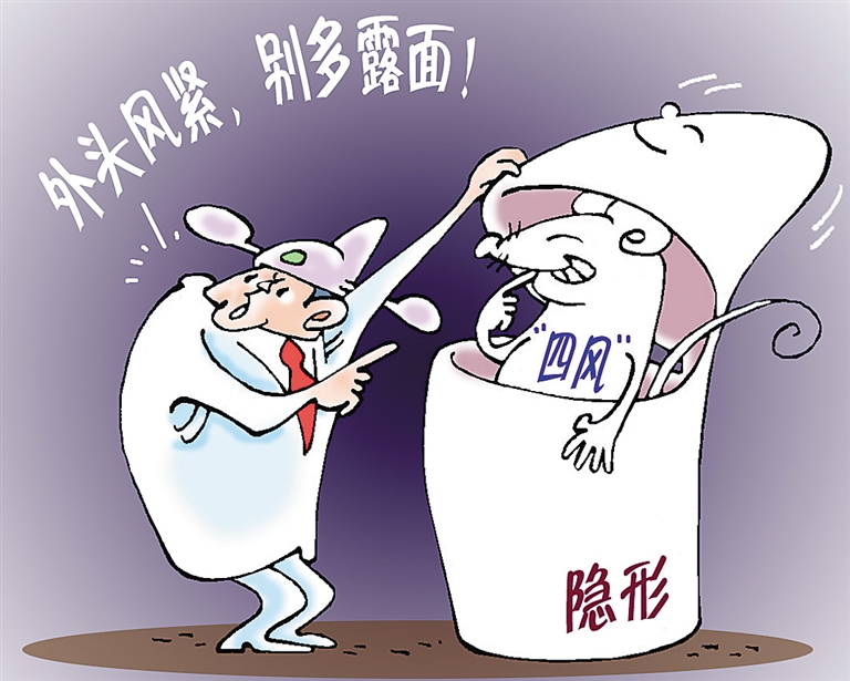 明里变暗里,地上转地下,反“四风”让一些不法官员有所忌惮,不敢任性妄为。可是,偷偷摸摸搞的“四风”,危害依然严重。纪检监察部门及时洞悉新情况,处理新问题,通报新案件,给心存侥幸者敲响了警钟。相信对各种明里暗里的“四风”问题持续发力、久久为功,反腐败和党风廉政建设就一定能取得更显著的成绩。这正是: