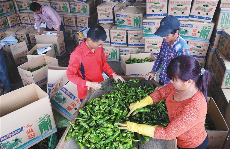 从去年底至今,仅这一个点每天就有近两万斤瓜菜装车出岛。由于形成品牌,价格也不断提升。近年来,定安县紧紧围绕“农业增效、农民增收”目标,着力在“新、特、深”三字上下功夫,有力推进传统农业向现代农业转型升级,全县涌现出一批具有地方特色的农业品牌,加快农民致富步伐。2014年,全县农业总产值47.45亿元,农业增加值达27亿元。