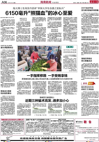 海南日报 海南新闻社会/民生 006 2015-02-041 2015年02月04日 星期三