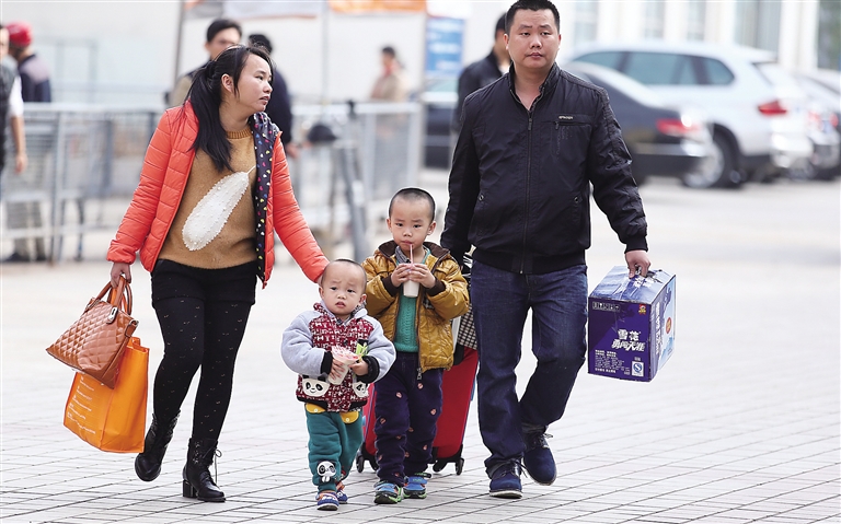海口汽车南站里,一家四口踏上返乡路。本报记者 张茂 摄