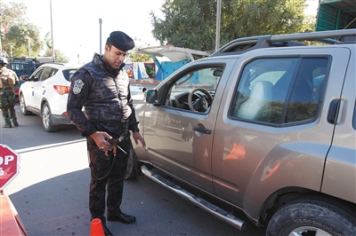 2月5日,在伊拉克巴格达,一名警察扫描经过检查站的车辆。 伊拉克政府当日发布公告说,鉴于伊首都巴格达近期安全局势好转,决定于7日开始解除巴格达长达数年的宵禁。 新华社/路透