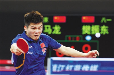 在2月3日进行的2015中国镇江·直通世界乒乓球锦标赛中国乒乓球队选拔赛决赛中,小将樊振东以3比1击败马龙,获得“直通苏州”第一轮淘汰赛冠军,从而将世乒赛男队首张入场券收入囊中。 新华社发