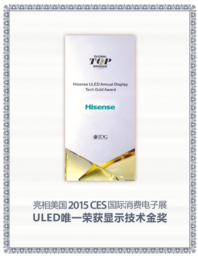 1月27日,“中国第一科技门户”中关村在线对主流品牌最畅销的55寸高端4K电视公开测评显示, 海信ULED在画质、智能体验、性价比等综合评比中获得最多选票,获评春节最值得购买的电视。而事实上,海信的ULED电视也的确获得了国内外的认可。1月7日CES展期间揭幕的“年度显示技术金奖”由海信ULED唯一获得。据了解,“年度显示技术金奖”由美国国际数据集团(IDG)权威发布,旨在奖励全球企业显示技术领域有突出贡献的技术。