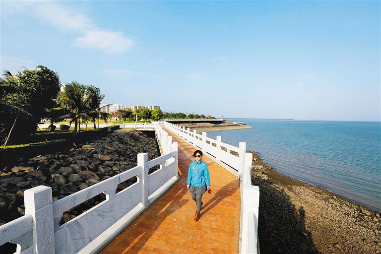据了解,滨海公园景观栈道建设的同时,加固了海防堤,不仅为海滩穿上了“防护衣”,还成为一道靓丽的风景线。 本报记者 陈元才 实习生 陈期财 摄