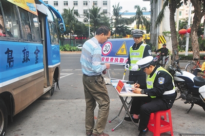 据悉,从1月15日起,海口交警分批在四个城防治安卡口共设立4个春运交通安全服务检查站,同时在高速公路入口、车站、港口设立7个交通检查卡点,加强对过往客货运车辆的检查,切实加强路面管控,做到“五个到位”:春运交通安全检查服务站启动到位、重点路段部位巡逻管控到位、安保工作部署到位、突发事件应急处置到位、安全防护设施设置到位。