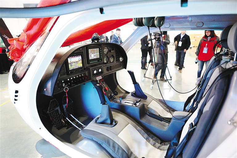 2月6日拍摄的RX1E锐翔双座电动轻型飞机驾驶舱。 当日,我国首款拥有自主知识产权的电动载人飞机——RX1E锐翔双座电动轻型飞机获得中国民航总局的型号合格审定,将进入批量生产阶段。 据介绍,这款轻型运动飞机最大巡航时速可达150公里,最高升空距离3000米,最大起飞重量约500公斤。飞机采用全碳纤维复合材料结构机体,以锂电池为能源,每充电一个半小时就可飞行45-60分钟。新华社发