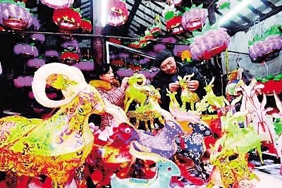 2月2日,秦淮灯彩省级非遗传人曹真荣正在工坊内扎制生肖羊花灯。随着农历羊年日益临近,手工艺人们忙着赶制“三羊开泰”、“喜气洋洋”等充满年味元素的生肖花灯。据了解,曹真荣今年共制作了3000只生肖羊花灯,为传统的夫子庙灯市准备货源。 (南京日报)