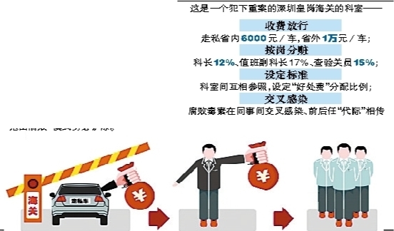 更为严重的事实是,这一重案和去年曝出的深圳沙头角海关腐败窝案十分类似。海关履行把守国家经济大门的神圣职责,焉能成为腐败多发之地?这种“抱团腐败”模式务必铲除。