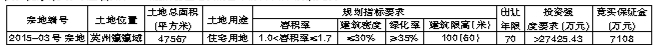 经陵水黎族自治县人民政府批准,陵水黎族自治县国土环境资源局决定以挂牌方式出让2015-03号宗地项目的国有建设用地土地使用权。现将有关事项公告如下:一、挂牌出让地块的基本情况和规划指标要求
