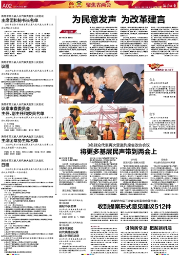 海南日报 聚焦省两会 002 2015-02-091 2015年02月09日 星期一