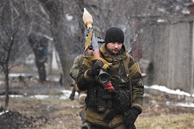 2月9日,一名乌克兰民间武装人员在杰巴利采沃西南6公里处的乌格列戈尔斯克镇附近行走。 欧盟成员国外长9日在布鲁塞尔举行会议,就乌克兰危机扩大制裁范围达成一致,但为给当前多方外交斡旋留出空间,决定将新增对乌东民间武装和俄罗斯制裁推迟至16日生效。 新华社/法新