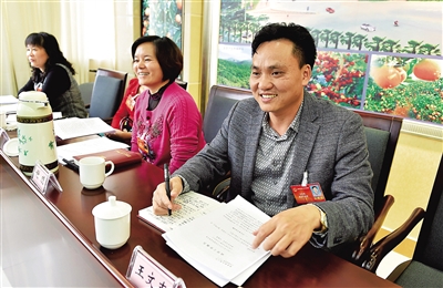 2月10日,王文克在审议政府工作报告时踊跃发言,认真记录。这位来自基层的“地瓜“书记表示,他要把会上的新政策、新信息带回去,带领村民过上更幸福的日子。