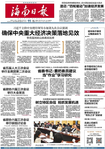 海南日报 头版 001 2015-02-111 2015年02月11日 星期三