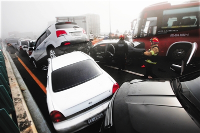 事故当天上午9时45分左右发生在仁川国际机场通往首都首尔方向的车道上。大桥长约4400米,事发路段当时有浓雾。一名警官说,事故发生时桥上能见度仅十余米,警方初步认为大雾引发严重追尾,事故起因仍在调查之中。