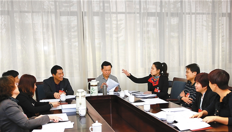 2月11日下午,出席省五届人大三次会议的临高代表团代表审议省高级人民法院工作报告和省人民检察院工作报告。