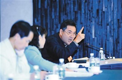 2月11日,省政协六届三次会议进行分组讨论议程。李家淦委员在谈法制建设中“刚性的法律与柔性的文艺”。本报记者 张杰 摄