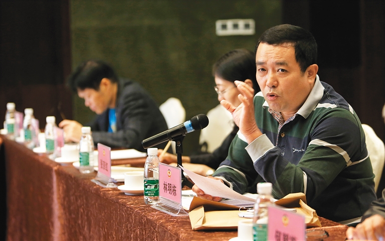 2月11日,省政协六届三次会议继续分组讨论海南省政府工作报告和“两院”工作报告。这是林明栋委员就菜篮子话题发表观点。 本报记者 宋国强 摄