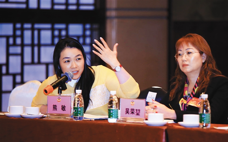2月11日下午,省政协六届三次会议进行分组讨论议程。图为熊敏委员,她几次举手“夺”得发言权,建议“法制教育从娃娃抓起”。 本报记者 张杰 摄