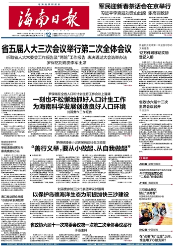 海南日报 头版 001 2015-02-121 2015年02月12日 星期四